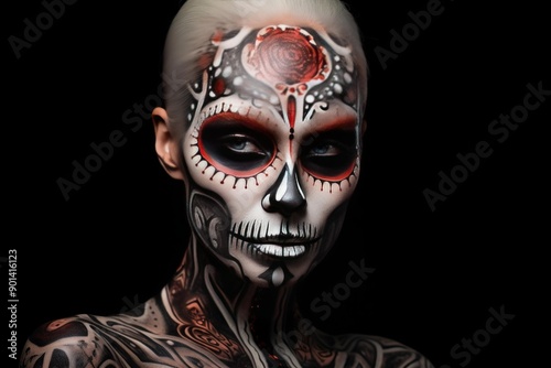 skull, make-up, face, paint, body, art, grisly, dark, background, artistic, portrait, halloween, skittish, gothic, horror, fantasy, creative, artistry, death, black, dramatic, model, painted, costume, celebration, theatrical, eerie, sinister, photo, shoot, design, beauty, fashion, style, disguise, creepy, cultural, tradition, dia, los, mysterious, avant, garde, edgy