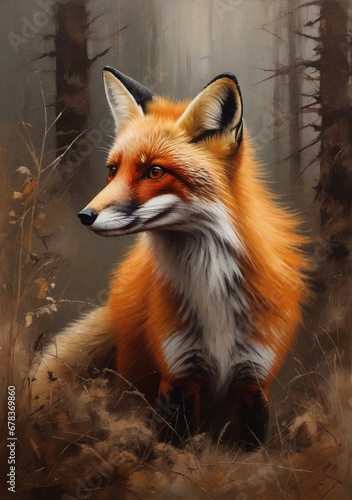 artistic, portrait, oil painting, fox, art, poster, picture, red fox, colours, forest, forest, vertical, poster, beautiful, wild, wildlife, animal, illustration, animal, illustration, graphic, background, design, cover, book, print, design, red, predator, nature, cute, canino, wild animal, young