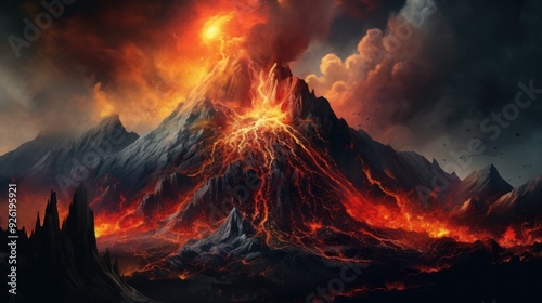 Artistic representation of a volcanic eruption in a dramatic