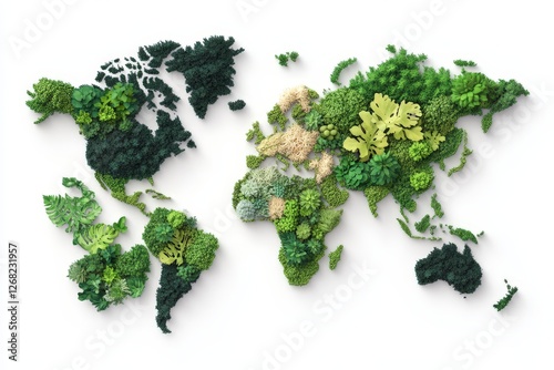 Artistic world map made of fresh broccoli and kale representing sustainable food global nutrition eco-conscious agriculture environmental awareness in creative organic arrangement