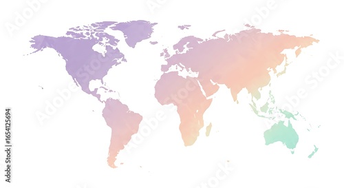 Artistic world map with a soft pastel gradient watercolor texture. Global concept illustration isolated on a white background for travel and geography design.