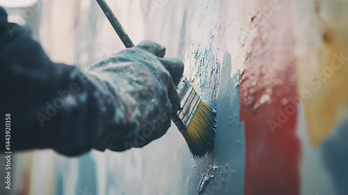 Artist's Hand Painting a Wall with a Brush