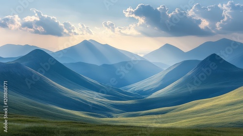 landscape, cloud, hill, mountain, sunrise, nature, scenery, sky, sunlight, green, peaceful, morning, travel, exploration, calmness, horizon, vegetation, mist, environment, beauty, atmospheric, wilderness, radiance, rural, topography, rolling, natural, panorama, serene, scenic, daylight, dusk, elevation, silhouette, geography, view