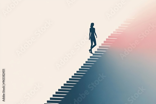 woman, silhouette, staircase, climbing, ascending, journey, hope, aspiration, future, progress, ambition, dream, goal, success, achievement, abstract, minimalist, illustration, digital artwork, gradient, colours, blue, pink, light, shadow, perspective, motivation, inspiration, growth, positivity, optimism, determination
