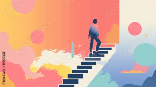 creativity, abstract, staircase, journey, vibrant, colourful, imagination, inspiration, ascent, artistic, surreal, graphic design, step, progress, determination, fantasy, modern art, dreamlike, digital illustration, ambition, pathway