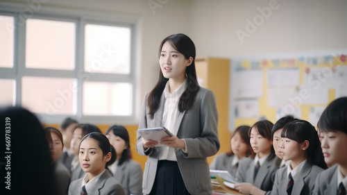 chalk, blackboard, class, classroom, cognition, college, elementary, exam, executive, group, job, lawyer, learn, learning, lecture, lesson, note, pupil, school, secretary, study, instructing, teacher, teaching, university, writing, education, student, course, smiling, smile, professional, person, room, businesswoman, teenage, book, lady, looking, model, indoor, confident, laptop, standing, smart, notebook, entrepreneur, online, japanese