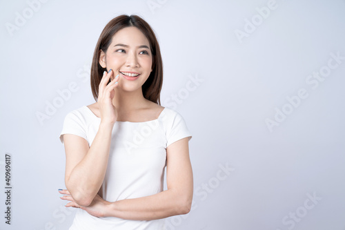 Asian beauty woman isolated on white background, Natural make up, Skincare and wellness.
