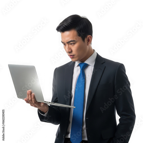 businessman, laptop, computer, technology, business, professional, asian, man, working, focused, screen, user, holding, suit, attaching, corporate, office, digital, information, datum, online, cyberspace, communication, connection, global, network, success, career, entrepreneur, startup, finance, strategy, analysis, planning, presentation