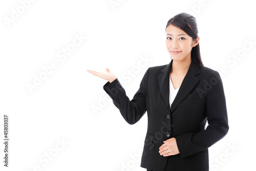 woman, work, business, people, smile, suit, working girl, career woman, ol, alone, young, advertisement, copy space, refer, gesture, message, announcement, waist up, refreshing, secretary, carrier, recruit, beauty, beauty, clean, sweet, appealing, black hair, long hair, model, japanese, asian, chinese, studio, white