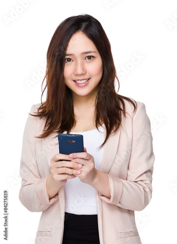 woman, lady, girl, female, japanese, korean, chinese, asia, asian, china, mandarin, taiwanese, colleague, supervisor, business, businesswoman, suit, manager, boss, leader, banker, accountant, teacher, mobile, phone, mobile phone, phone, smartphone, message, text, screen, read, look, isolated, white, background, people, person, portrait, 1, young, youth, pink, smile, happy, beautiful, pretty