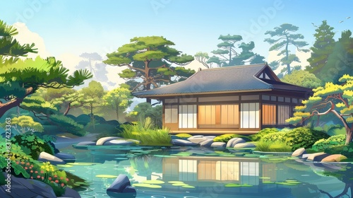 Asian classical old fashion house illustration wallpaper background