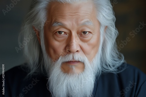 man, portrait, face, asian, elder, senior, white, hair, beard, eye, mature, ageing, old, closeup, head, looking, serious, expression, model, person, grey, wisdom, wise, ethnicity, calm, neutral, culture, japanese, korean, chinese, studio, indoor, background, depth, field, photo, style, photogenic, male, confident, intensity, gaze, portraiture, clarity, focused, determined