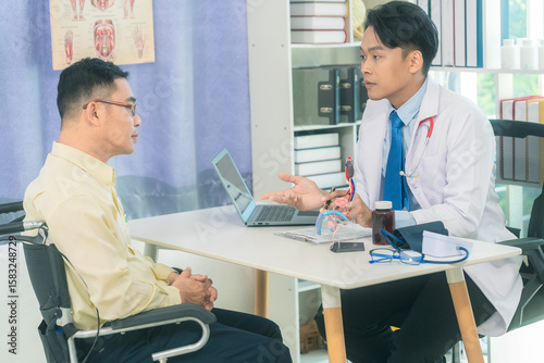 Asian elderly urologic diseaseThe concept of urinary tract infection and prostate infection in an elderly man visiting a doctor