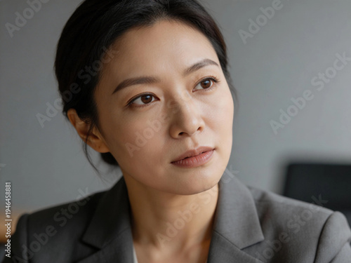 asian, woman, listening, attentiveness, concentration, engagement, communication, interaction, cooperation, collaboration, teamwork, enterprise, workplace, advisory, consultation, professionalism, negotiation, insight, supervision, hierarchy, business, businesswoman, person, beauty, people, smiling, suit, 1, smile, face, professional, brunette, office, lady, hair, executive, studio, corporate, confident