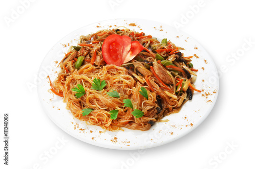 dish, vegetable, noodle, food, epicure, vermicelli, asian, rice, stir, cookery, thai, siam, lunch, white, dinner, onion, delicious, green, chinese, plate, meal, wooden, asia, closeup, oriental, red, brown, horizontal, eatery, healthy, up high, fresh, sauce, spinach, carrot, still life, fried, tomatoes, parsley, isolated, background, pepper, transparent, vegetarian, mushroom