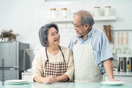 senior, couple, kitchen, hug, asian, insurance, healthy, lifestyle, family, love, old, grandparent, active, happy, eltern, smile, look, racked, elderly, mature, together, care, cheerful, room, enjoy, female, counter, male, man, woman, people, retire, romance, husband, wife, human relationships, house, home