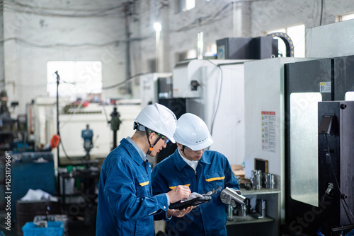 workplace, tablet, digital, hard hat, chinese, asian, portrait, manufacture, men at work, manufacturing, technician, machine, manager, professional, job, male, work, business, man, engineer, industrial, technology, industry, factory