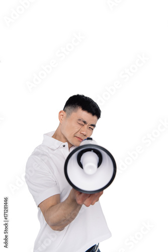 asian man with bullhorn