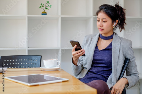Asian modern business working from home or private working space on tablet and smart phone, using application technology