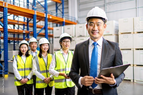 asian, warehouse, operation, director, leading, logistic, team, manager, supervisor, shipping, distribution, storage, transportation, supply, chain, management, factory, industrial, business, executive, professional, men at work, employee, job, career, teamwork, collaboration, planning, organisation, strategy, efficiency, productivity, inventory, stock, good, cargo, handling, delivery, order, fulfillment, cardboard box, dispatch, warehouseman, coordinator, foreman, office, workplace, commerce