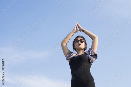 Asian woman exercising outdoors