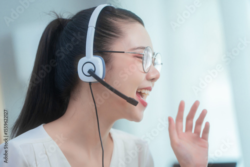 asian, woman, headset, desk, home, office, remote, work, call center, client, service, support, technical, online, video, meeting, virtual, communication, professional, business, digital, collaboration, teamwork, laptop, computer, training, presenter, organiser, consulting, coaching, telework, engaged, modern, cyberspace, interaction, chat, conference, network, employee, employer, career, job, workplace, productivity, efficiency, organised, management, platform