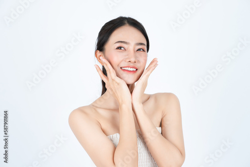 Asian woman with white skin and healthy skin