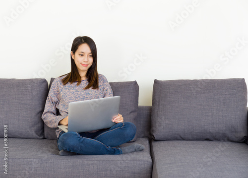 home, asian, woman, computer, notebook, laptop, portable, asia, girl, lady, female, people, person, digital, electronic, sofa, house, relax, rest, typing, type, text, texting, condensed, sharpened, using, use, report, stay, surf, surfing, net, cyberspace, watching, looking, motion picture, video, working, office
