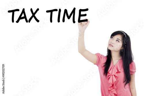 Asian woman writes Tax Time