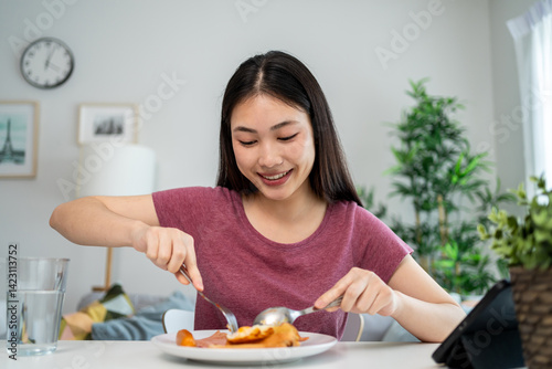 breakfast, eating, dish, woman, water, ravenous, drink, brunch, cooking, american, appetence, asian, bacon, bean, bread, casual attire, cookery, culinary, diet, egg, english, enjoyment, food, fresh, fried, health, healthy, home, homemade, house, ingredient, lifestyle, looking, lunch, meal, modern, morning, people, person, plate, starving, table, tasty, young, nourishment, eat, smiling, day