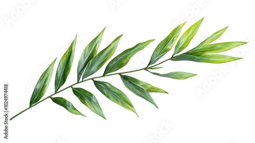 Asparagus setaceus leaf on white background. AI generated illustration.