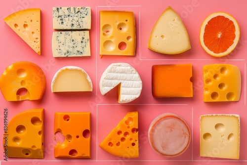Assorted cheese product collage in contemporary style with various delightful varieties