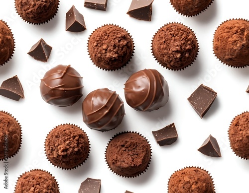 chocolate, truffle, dark chocolate, milk chocolate, cocoa, confectionery, sweet, dessert, candy, treat, delicious, epicure, luxury, food, sweet, tasty, white background, topview, food photography, confection