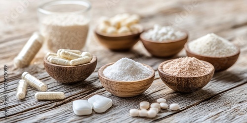 collagen, supplement, powder, capsule, tablet, wooden, bowl, rustic, surface, neutral, tone, assorted, health, nourishment, wellness, beauty, protein, natural, organic, ingredient, dietary, vitamin, mineral, herbal, skincare, body, hand, closeup, modern, alternative, lifestyle, aromatic, holistic, fitness, vitality, energy, natural beauty, healthy lifestyle, rejuvenation, essential, homeopathy, therapeutic