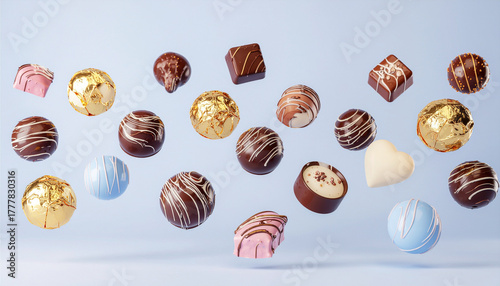 assorted, chocolate, candy, falling, bonbon, dark chocolate, white, floating, truffle, three-dimensional, pink, blue, sweet, confectionery, epicure, luxury, colourful, pastel, assortment, treat, food, chocolate, sweet, candy, dessert, brown, isolated, snack, praline, truffle, sugared-almond, milk, gift