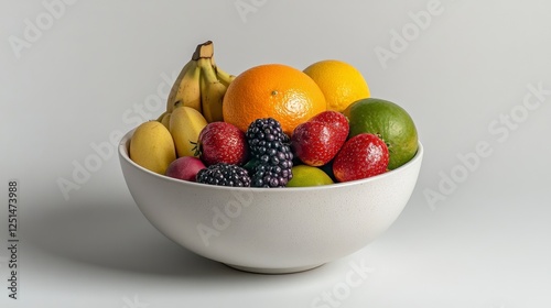 fruit, bowl, banana, orange, lime, strawberry, blackberry, speckled, white, background, bright, fresh, food, healthy, colourful, still life, photo, vibrant, delicious, dessert, ripe, juicy, sweet, tart, summer, nature, vitamin, diet, nourishment, organic, epicure, tabletop, studio shot, composition, arrangement, aesthetic, minimalist, simple, clean, white bowl, food photography, healthy lifestyle, natural, citrous
