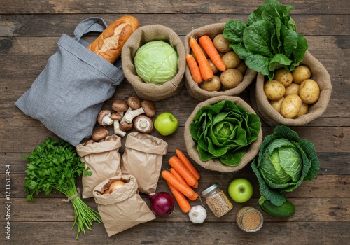 vegetable, food, rustic, table, fresh, bread, bag, cabbage, carrot, potato, basket, mushroom, apple, greener, parsley, onion, garlic, jar, spice, wooden, produce, healthy, organic, whole, vegan, vegetarian, grocery, market, ingredient, top, view, brown, texture, raw, ripe, seasonal, nourishment, cooking, eat, diet, agriculture, farm, nature, harvest, still life, macro, close, arrangement, assortment