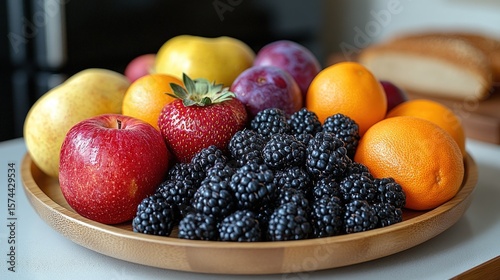 fruit, blackberry, strawberry, orange, apple, plum, pear, ripe, delicious, healthy, breakfast, sweet, natural, juicy, variety, fresh, bowl, wooden, circle, colourful, texture, organic, still, life, nourishment, diet, season, summer, tasty, vitamin, food, plate, table, sharpened, close, up, background, blurred, dark, light, sliced, round, arrangement, puckered, sunlight, kitchen, bread, morning