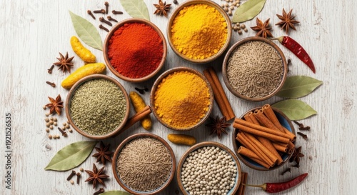 spice, herb, turmeric, paprika, cumin, coriander, cinnamon, star, anise, clove, dried, whole, culinary, seasoning, cooking, baking, natural, food, ingredient, wooden, background, jar, colourful, texture, favor, organic, kitchen, epicure, aromatic, health