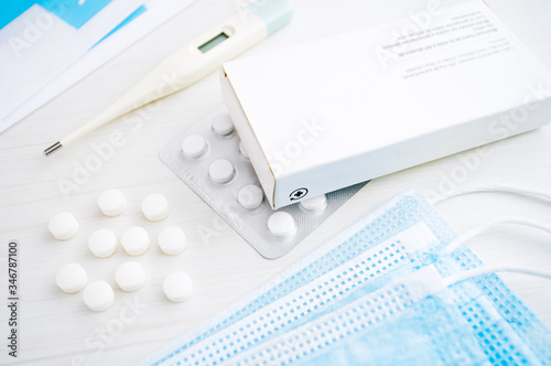 make well, medicine, treatment, prevention, antiviral, blister, box, bright, care, disease, generic, health, hope, hygiene, medicals, neutral, package, cardboard box, pandemic, pill, sanitary, thermometer, virus, clean, drug, pharmaceutical, pharmacy, item