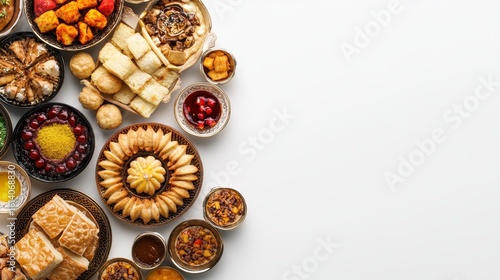 Assorted Middle Eastern Dishes on a White Background for Celebration