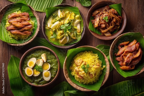 food, dish, cookery, asian, meal, plated, eatery, overhead, wooden table, curry, rice, meat, egg, vegetable, colourful, healthy, topview, dinner, lunch, plate, food photography, delicious, cooking, composition, diet, vegetarian, vegan, isolated, copy space, indian food, thai food, health food