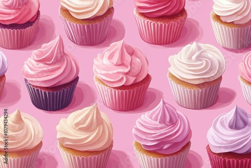 cupcake, frosting, pink, white, swirl, sweet, treat, dessert, delicious, bakery, cake, party, celebration, birthday, wedding, love, happy, colourful, cute, adorable, deliciously, tasty, pastel, background, pattern, texture, patterned, photo, stock, epicure, food, appetising, sugar, whipped, cream, vanilla, strawberry, cherry, chocolate, raspberry, lemon, sprinkle