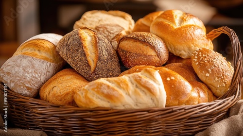 Assortment of Freshly Baked Bread in a Wicker Basket