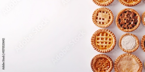 pie, dessert, assortment, baked, gold, pastry, sweet, food, crust, treat, image, variety, delicious, homemade, snack, fruit, filling, epicure, cookery, tart, bakery, traditional, sugar, comfort, round, pumpkin, apple, cherry, lemon, meringue, berry, space, white background, table, topview, copy space, empty space, nourishment, meal, indulgence, pie chart, culture, banner