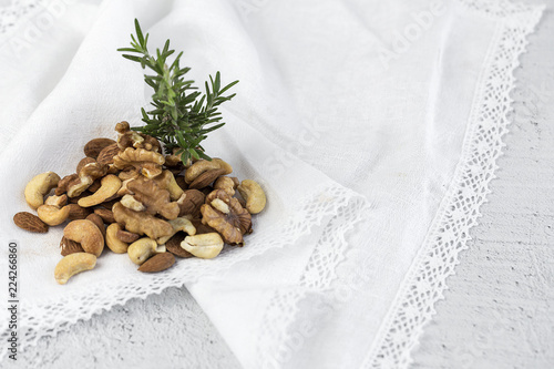 Assortment of nuts. On a light background.
