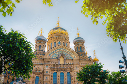 Assumption Church in summer on Vasilievsky Island. Saint Petersburg, Russia