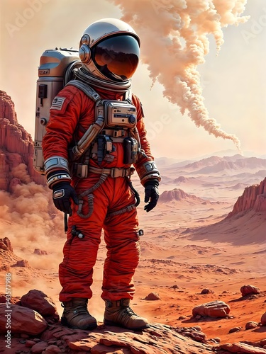 astronaut, mars, martian, space exploration, science fiction, digital artwork, science fiction, cosmic, extraterrestrial, exploration, interplanetary, adventure, digital illustration