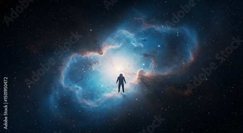 astronaut, float, digital artwork, celestial, dreamlike, outer space, science fiction, nebula, galaxy, star, light, silhouette, space suit, space, dark, background, artwork, exploration, loneliness, concept, illustration, design, wallpaper, poster, desktop, screen, projection, art, person, center, shape, body, universe, flight, nebular, distance, cloud, suit, sky, astronomy, flare, fantasy, cosmos, space-travel, celestial bodies