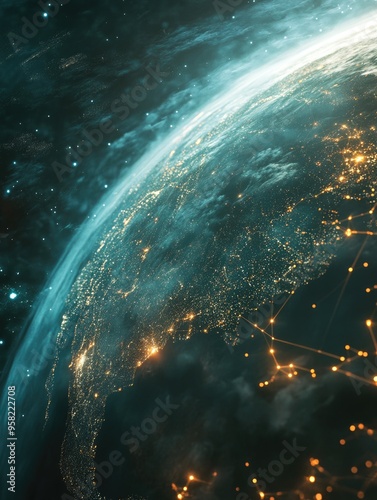 space, technology, ai, satellite, global, connectivity, earth, orbit, interconnected, cosmos, futuristic, advanced, artificial, intelligence, system, infrastructure, monitoring, managing, operation, related, travel, realistic, depiction, network, human, achieving, expansion, cutting, edge, swirling, pattern, vibrant, colours, exploration, scenario, future, society, cosmic